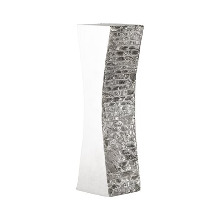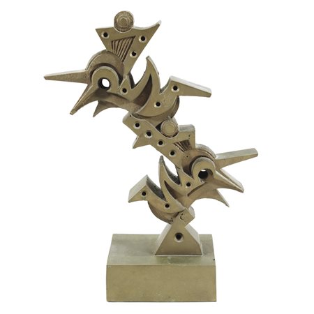 "Senza titolo", scultura in metallo argentato, firmata in basso -