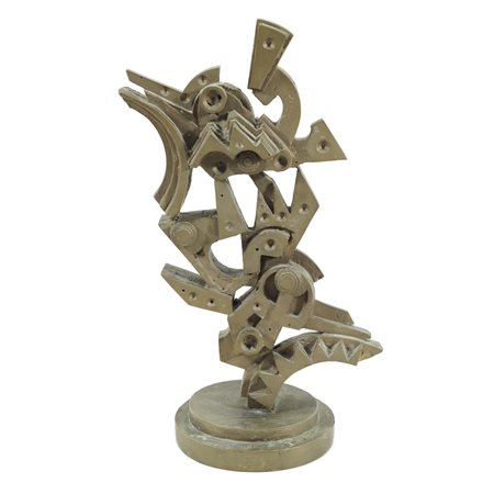 "Senza titolo", scultura in bronzo, firma incisa a lato, poggiante su base circolare.