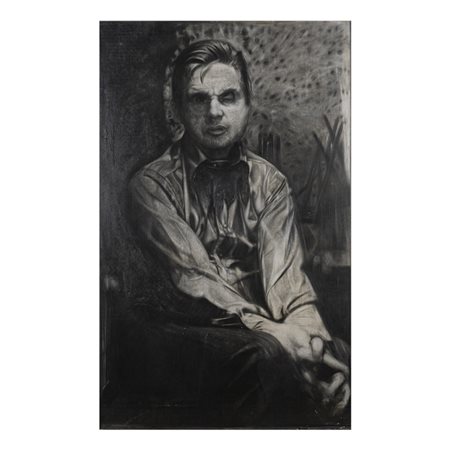"Studio per Francis Bacon", 1977, tecnica mista su carta applicata su tela, firmata in basso a sinistra, firmata e titolata sul retro, entro cornice.