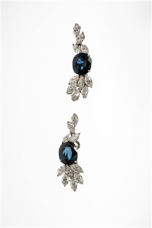 in oro bianco, con due zaffiri taglio ovale per totali ct 5,50 ca e diamanti taglio navette per totali ct 2,80 ca. -