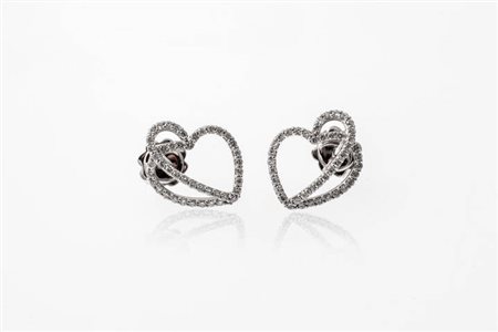in oro bianco, a lobo, con due cuori stilizzati in diamanti taglio brillante per totali ct 0,57 ca, probabile colore G-H, purezza IF-VVS -