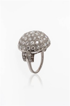 in oro bianco, a cupola, con pavé di diamanti taglio brillante per totali ct 4,50 ca, probabile colore G-H, purezza IF-VVS -