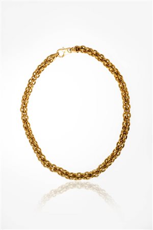 in oro giallo lavorata a maglia tubolare ad anelli -