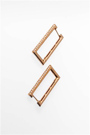 in oro rosa, a cerchio geometrico, con parte anteriore in diamanti taglio brillante per totali ct 0,39 ca, probabile colore G-H, purezza IF-VVS -