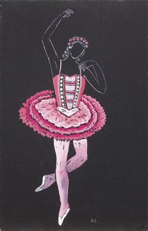 Gino Severini Cortona (Ar) 1883 - Parigi 1966 Isabella, 1951 Tempera su cartoncino nero applicato su compensato, cm. 46,8x29,8 Sigla in basso al centro: G.S. Al verso sul compensato: etichetta L’Immagine / Galleria d’Arte Contemporanea. Certificato di Gina Severini Franchina, Roma 2/10/95. Fax di Romana Severini Brunori, in data 20 novembre 1998. Esposizioni Art Club, Casa d’Arte San Lorenzo, San Miniato, 15 maggio 2006. Costume per Scarlattiana di Alfredo Casella, eseguito da Severini nel 1951 per la seconda versione dello spettacolo andato in scena a Parigi e al Maggio Fiorentino (la prima versione, eseguita al Teatro delle Arti di Roma nel 1943, aveva dei costumi diversi).
