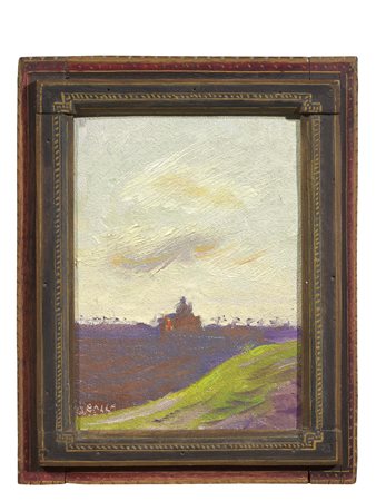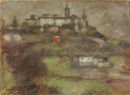 Ardengo Soffici Rignano sull’Arno (Fi) 1879 - Vittoria Apuana (Lu) 1964 Veduta di Collescipoli, 1945 Olio su cartone, cm. 35,5x47,8 Firma e data in basso a sinistra: Soffici 45; al verso titolo, firma e scritta: Veduta di Collescipoli (Terni) / Soffici / Inverno 1945 / Inter[...] camp / Ardengo Soffici: etichetta Raccolta “Il Pergamo”, Prato, con n. 034: etichetta Amici dell’Arte - Macerata / Pittori d’oggi: etichetta Municipio di Livorno / Mostra “50 Artisti degli ultimi 30 anni” / organizzata nel Salone della Casa della Cultura / di Livorno dal 11 gen. 1958 al 30 gen. 1958, con n. 71: timbro Municipio di Livorno - Casa della Cultura. Esposizioni Ardengo Soffici. Giornate di paesaggio, 50 opere a cinquant’anni dalla scomparsa e 15 paesaggi di pittori italiani, a cura di Luigi Cavallo, Poggio a Caiano, Scuderie Medicee, Museo Soffici e del ‘900 italiano, 26 aprile - 27 luglio 2014, cat. p. 77, illustrato a colori.