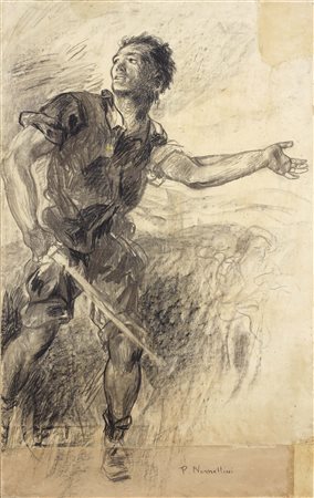 Plinio Nomellini Livorno 1866 - Firenze 1943 Studio per “La rossa avanguardia delle Argonne”, (1917) Carboncino su carta applicata su tela, cm. 112,5x70,5 Firma in basso a destra: P. Nomellini. Si ringrazia Barbara Nomellini per l’aiuto fornito nella compilazione della scheda.