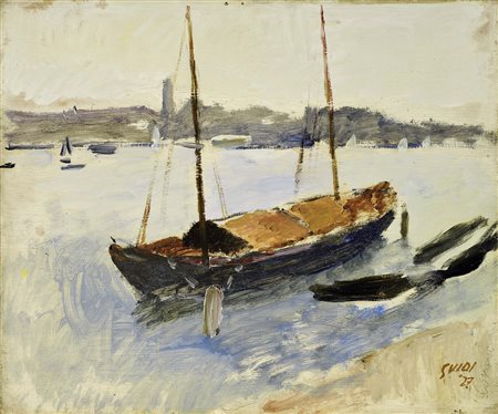 • Virgilio Guidi Roma 1891 - Venezia 1984 Marina con veliero, 1927 Olio su...