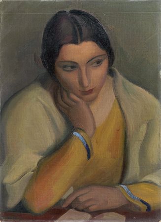 Mario Tozzi Fossombrone (PU) 1895 - St. Jean du Gard 1979 Malinconia (Studio - Mezza figura), 1925 Olio su tela applicata su tavola, cm. 55x38 Firma in basso a sinistra: M. Tozzi. Al verso sulla tavola: cartiglio con dati dell’opera. Certificato su foto Archivio Mario Tozzi, Foiano, 8 maggio 2014, con n. 1089. Esposizioni Quindici artisti del Novecento Italiano, Milano, Galleria Scopinich, febbraio 1927, cat. n. 67. Bibliografia Marilena Pasquali, Catalogo ragionato generale dei dipinti di Mario Tozzi, volume primo, Giorgio Mondadori, Milano, 1988, p. 128, n. 25/7.