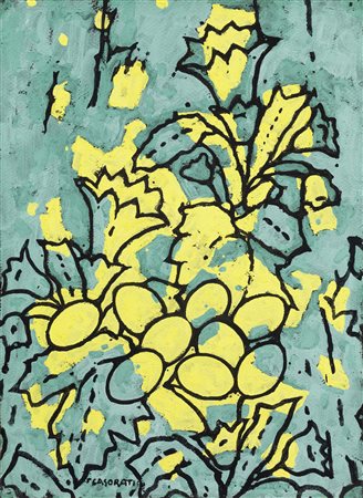 Felice Casorati Novara 1883 - Torino 1963 Uova e genziane, 1960 Tempera su carta applicata su tela, cm. 50,3x37,5 Firma in basso a sinistra: F. Casorati. Al verso sulla tela: cartiglio con dati dell’opera. Storia Collezione privata, Torino; Galleria La Bussola, Torino; Galleria Gissi, Torino; Collezione privata Esposizioni I protagonisti, “Qualità nella varietà”, Torino, Galleria Gissi, ottobre 1982, cat. n. 10, illustrato. Bibliografia Giorgina Bertolino, Francesco Poli, Felice Casorati Catalogo Generale. I dipinti (1904-1963), 2 volumi, Umberto Allemandi e C., Torino, 1995, vol. I, p. 453, n. 1207; vol. 2, tav. 1207.