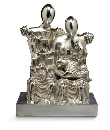 Giorgio de Chirico Volos 1888 - Roma 1978 Archeologi con bambino Scultura in bronzo argentato, es. V/VII, cm. 36,5 h. Firma e tiratura sulla base: G. de Chirico / V/VII: punzone Fonderia Bonvicini, Verona: marchio del centenario della nascita del Maestro Giorgio de Chirico. Certificato su foto di Claudio Bruni Sakraischik. Esposizioni La Neometafisica. Giorgio de Chirico & Andy Warhol, Cortina d’Ampezzo, Farsettiarte, 26 dicembre 2011 - 8 gennaio 2012, poi Firenze, Galleria d’Arte Frediano Farsetti, 14 gennaio - 18 febbraio 2012, cat. n. 16, illustrata a colori; Giorgio de Chirico. Myth and Mystery, Londra, Estorick Collection of Modern Italian Art, 15 gennaio - 19 aprile 2014, cat. pp. 64, 65, n. 20, illustrata a colori. Da un gesso originale inedito del 1969, tiratura in sette esemplari numerati da I/VII a VII/VII, due prove d’artista segnate EA I/II, EA II/II e una prova fuori commercio non numerata per la Fondazione Giorgio e Isa de Chirico. L’edizione è stata eseguita presso la Fonderia Bonvicini di Verona (1988 e 1991), in occasione del centenario della nascita del Maestro, ed è stata autorizzata dalla signora Isabella de Chirico alla signora Lisa Sotilis, in data 27 marzo 1987. Bibliografia Achille Bonito Oliva, Giorgio De Chirico. Pinturas e esculturas, catalogo della mostra Museu Brasileiro da Escultura, Sao Paulo, 16 marzo - 28 aprile 1998, pp. 22, 72, n. 21.