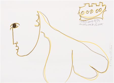 Firma, data e titolo in alto a destra: Carol Rama 1993 / La corona di Keaton, dedica in basso a destra: x l'amico [...].