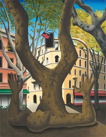 Firma, data e scritta al verso sulla tela: Mark Kostabi / Branching out / 2003 / 6-24-03 Byng, George; sul telaio: etichetta Mark Kostabi / Opera pubblicata / sul volume della / Mostra antologica / Kostabi a Venezia / a pag. 205.