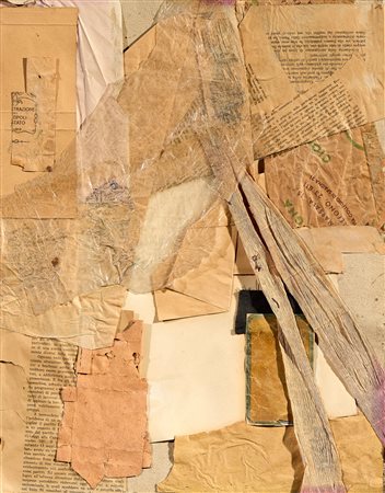 Tecnica mista e collage su carta applicata su tela, cm 70x50