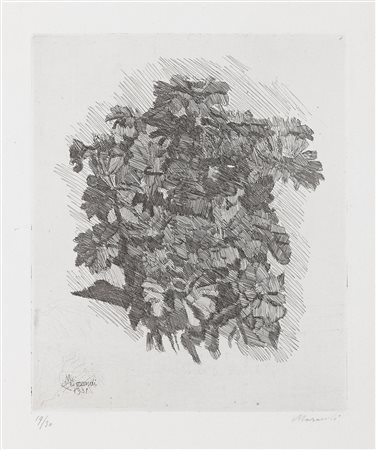 Firma e data in lastra in basso a sinistra: Morandi / 1931, firma a matita sul margine in basso a destra: Morandi, tiratura in basso a sinistra: 19/30.