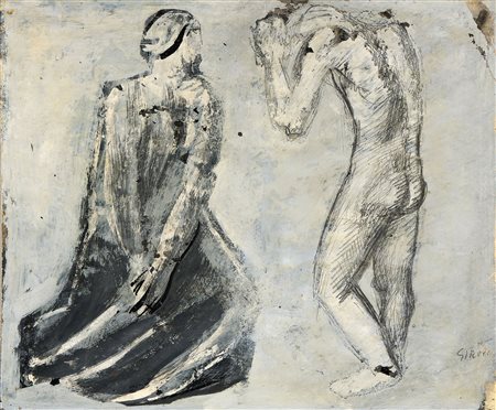 Firma in basso a destra: F. Casorati; al verso: Felice Casorati / "Rape": etichetta XXXII Biennale Internazionale d'Arte / di Venezia - 1964, con n. 312: etichetta Exposition d'Artistes Italiens Contemporaines / Musée Rath, Genève, Février 1927: etichetta parzialmente abrasa Galleria Pesaro.