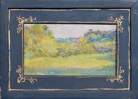Olio su cartone pressato, cm 9x16,4, in cornice dipinta cm 16,5x23
