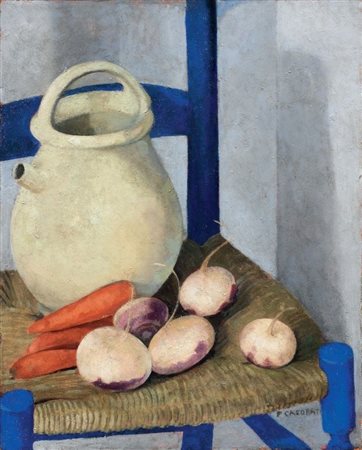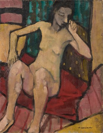Firma in basso a destra: F. Casorati. Al verso sulla tela e sul telaio: timbro Galleria Bergamini, Milano, con n. C.4.A45.II.