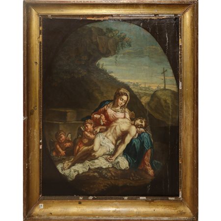 Lotto 15 Pietà, 17° secolo h cm 71X59 in cornice 83X70 olio su tela Opera reintelata in cornice del XIX secolo