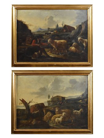 Coppia di Scene con pastori e pecore