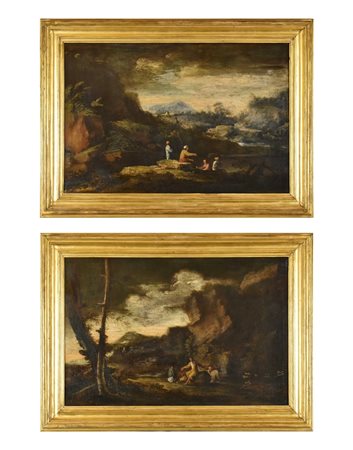 Coppia di Paesaggi con figure