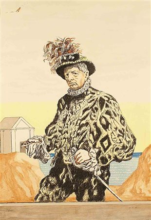 Lotto 8 Giorgio de Chirico (Volos 1888 - Roma 1978), "Autoritratto in costume", litografia a colori, es. III/XXV, firmato in basso a destra, cm. 100x70, (difetti).