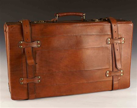 Lotto 9 Valigia vintage in cuoio, cm. 55x36x18.