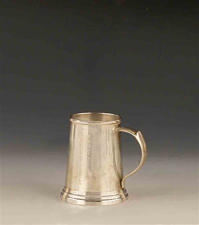 Lotto 10 Boccalino in argento a corpo liscio con manico, gr. 112.