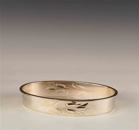 Lotto 12 Vassoietto ovale in argento liscio e sbalzato, vecchia manifattura, gr. 360 .