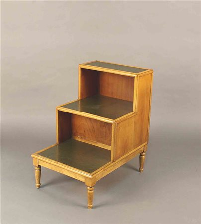 Lotto 15 Particolare scaletta da libreria in legno a tre scalini rivestiti in pelle ed uno sportello, vecchia manifattura, cm. 77x69x50.