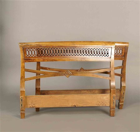 Lotto 17 Letto singolo in noce con testiera e pediera traforata, vecchia manifattura, cm. 91.