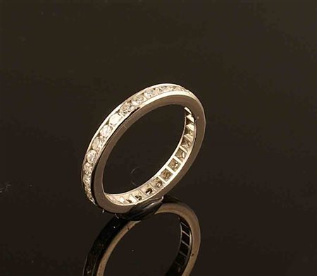 Lotto 20 Anello fede in platino con incastonati diamanti taglio brillante per 0,90 punti circa, gr. 3,4.