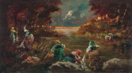olio su tela cm. 14x20,8; firma in basso a destra. -