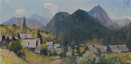 olio su tela cm. 40x80, firma in basso a sinistra, etichetta e timbro della Galleria d'Arte La Finestrella di Canelli (AT) al retro. -