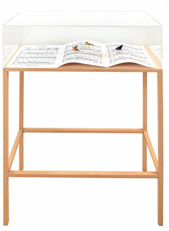 musical score, butterflies and wood 46,3x27,19x12,61 in