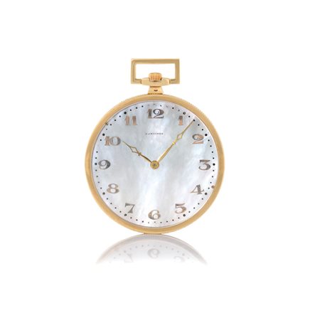C. in oro rosa 18 kt con carrura godronata. Q. in madreperla con numeri arabi applicati . M. con scappamento ad ancora, carica manuale. Quadrante e movimento firmati. Completo di astuccio rivenditore danese.