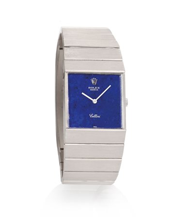 C. n. 4319113 rettangolare massiccia in oro bianco 18 kt. Q. in lapislazzuli. M. a carica manuale. Bracciale massiccio in oro bianco 18 kt. Quadrante, cassa, movimento e bracciale firmati.