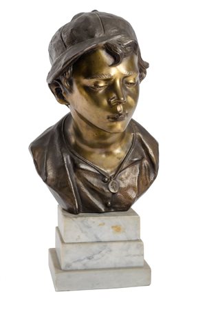 Lotto 5 SCULTURA in antimonio raffigurante "scugnizzo", base in marmo. Meta' '900 Misure: h cm 32