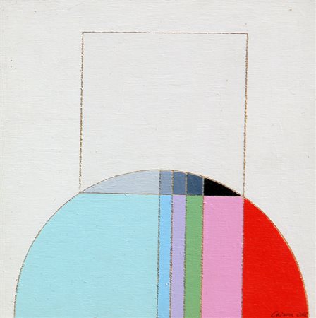 Lotto 2 Eugenio CARMI Genova 1920 Un segnale, 2002, acrilico su tavola, cm. 20 x 20, Firma, data 'Carmi, 2002' (in basso a destra) #Firma, titolo, data, misure, tecnica 'Eugenio Carmi, Un segnale, 2002, cm. 20x20, acrilici su tavola' (al retro) Autentica dell'artista su fotografia