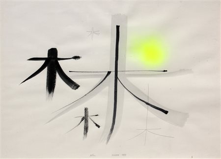 Lotto 6 Bruno MUNARI Milano, 1907 - Milano, 1998 Alberi, 1993, tecnica mista su cartoncino, cm. 56 x 76, 'Bruno Munari. Da cosa nasce cosa', a cura dell'Associazione Culturale Progetto Voghera, catalogo della mostra 8-30 maggio 2004, Voghera, p. 69, Titolo, firma, data 'Alberi, Munari, 1993' (in basso al centro) #Etichetta di Lattuada Studio, Milano (al retro)