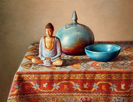 Lotto 11 Antonio NUNZIANTE Napoli, 1956 I viaggi di Marco Polo, 2009, olio su tela, cm. 40 x 50, M. Goldin, 'Nunziante opere 1995-2010', Catalogo Generale VIII volume, Electa Mondadori, 2010, Firma 'Nunziante' (in basso a destra) #Data, firma, titolo, numerazione '2009, Nunziante, I viaggi di Marco Polo, AN009-1939A' (al retro) Autentica dell'artista su fotografia, con n° AN009-1939A