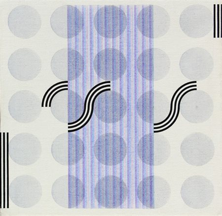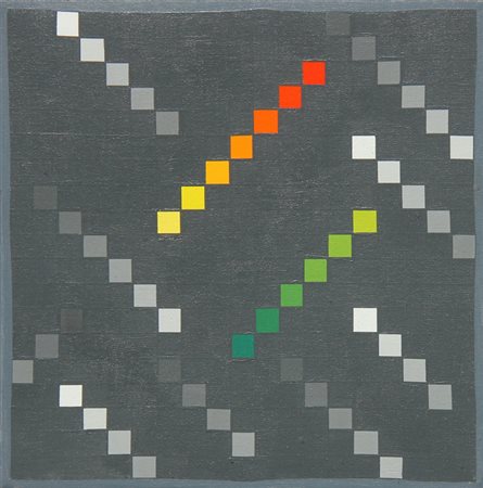 Lotto 17 Jorrit TORNQUIST Graz 1938 Opus 394A, 1971, acrilico su legno, cm. 20 x 20, Firma, data, titolo 'Tornquist, 71, 394A'; #timbro dell'artista; #timbro della galleria Nuova Artesegno, Udine; #timbro Collezione Marfedo Palizzi (al retro)