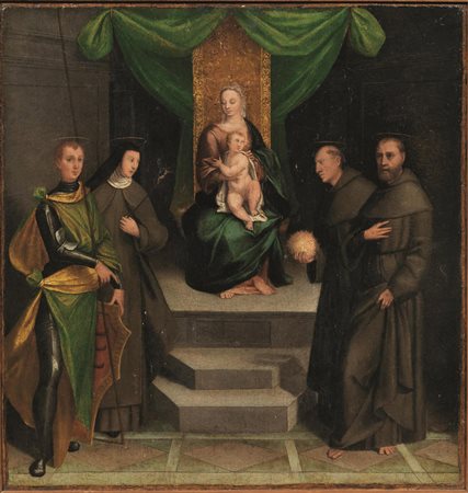 MADONNA CON BAMBINO IN TRONO FRA SAN FRANCESCO, SAN BERNARDINO, SANTA CHIARA E SANTO GUERRIERO