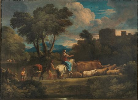 PAESAGGIO CAMPESTRE CON PASTORI E ARMENTI