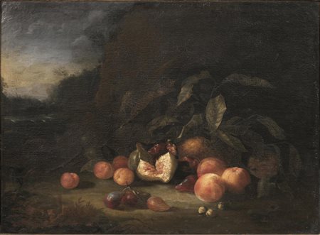 PESCHE, FICHI ED ALTRA FRUTTA IN UN PAESAGGIO