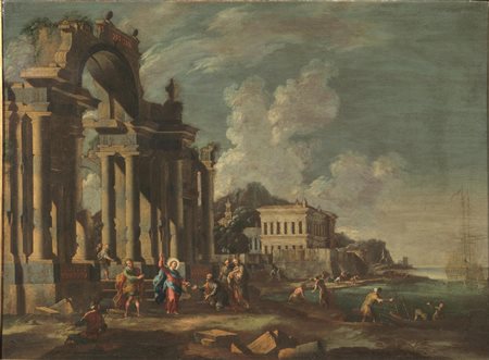 PAESAGGIO COSTIERO CON CAPRICCIO ARCHITETTONICO E EPISODIO DEL NUOVO TESTAMENTO