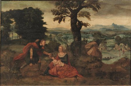 La tavola qui presentata, per cui la proprietà possedeva un riferimento di attribuzione a Michael Coxie (Mechelen 1499-1592), può essere per ragioni stilistiche e qualitative più correttamente collocabile tra i seguaci di Joachim Patinir (Anversa 1485 circa-1524).