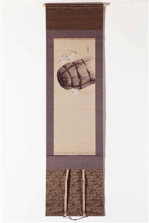 Lotto 9 Arte Giapponese Mochizuki Kinpo (1846 - 1915) Dipinto raffigurante tre topi e una balla di paglia con firma e sigillo Giappone, periodo Meiji, anno del topo, primavera 1912. -. Cm 56,50 x 209,00. Rotolo verticale (Kakemono) su seta dipinto nella primavera del 1912, anno del topo, primo segno dello zodiaco cinese. Il dipinto è conservato dentro la sua scatola originale.
