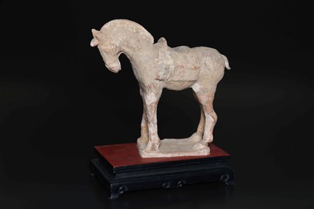 Lotto 18 Arte Cinese Cavallo in terracotta policroma Cina, dinastia Tang, VII - IX secolo AD. . Cm 30,00 x 27,00 x 10,00. Terracotta funeraria raffigurante un cavallo in posizione compassata con zampe parallele ed il muso rivolto verso il basso con sguardo sereno. L'oggetto presenta tracce di verniciatura. Corredato di test termoluminescenza in data 12/11/1998 dalla ditta Arcadia per accertare la datazione del reperto, come da documentazione allegata all'opera.