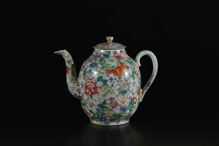 Lotto 23 Arte Cinese Teiera in porcellana decorata con motivo di millefiori e marcata Guangxu Cina, dinastia Qing, epoca Guangxu 1875 - 1908. . Cm 16,00. Teiera con decorazione a motivo floreale. Reca marchio sulla base.